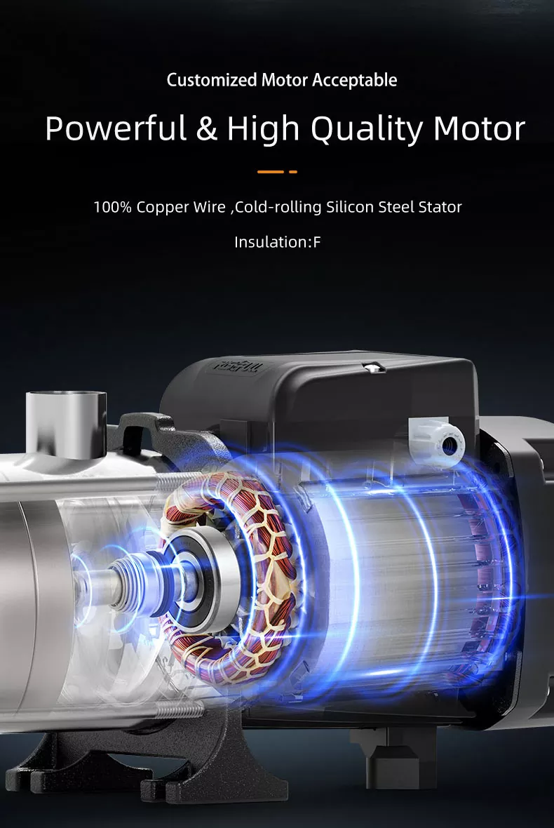 Monivaiheinen keskipakopumppu on vesipumppuväline, joka yhdistää useita keskipakopumppuja sarjassa ja tuottaa keskipakovoimaa pyörittämällä monivaiheisia juoksupyöriä tulostuspaineen lisäämiseksi. Se lisää vähitellen painetta monivaiheisten juoksupyörien sarjan yhteyden kautta, saavuttaen siten korkean noston. Monivaiheisen keskipakopumpun suorituskykyalue on leveä, ja virtausnopeus ja pää voidaan mukauttaa käyttäjän tarpeiden mukaan. Se soveltuu kuuman ja kylmän veden kiertämiseen ja paineeseen korkean paineen käyttöjärjestelmissä, palontorjuntaa, kattilan syöttövettä ja jäähdytysvesijärjestelmiä ja erilaisten huuhteluesineiden toimittamista.
