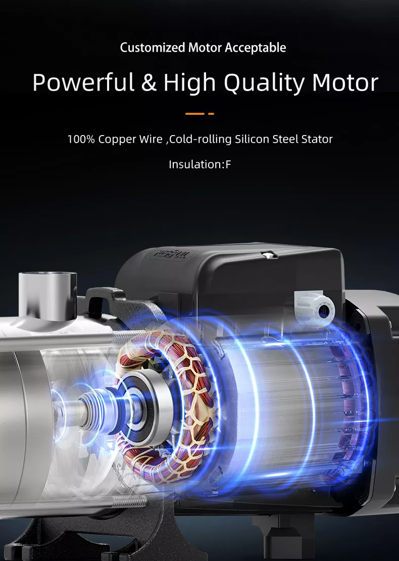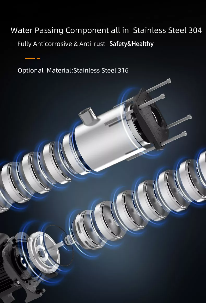 4. Energiatehokas: Edistyksellisen suunnittelunsa ja huipputeknologiansa ansiosta monivaiheinen pumppumme optimoi energiankulutuksen ja auttaa vähentämään käyttökustannuksia ja säilyttämään huippusuorituskyvyn.
