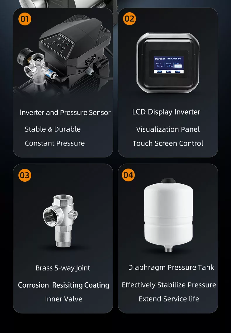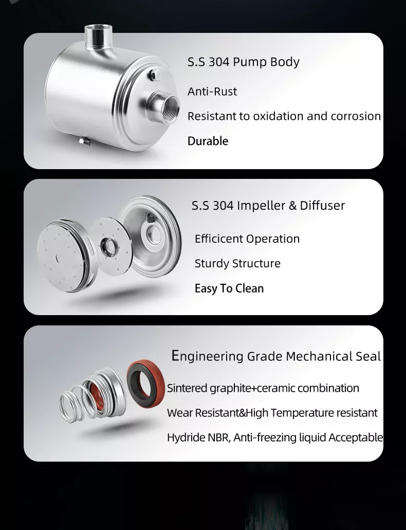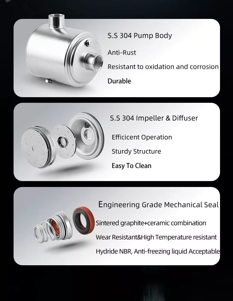 3. Monipuoliset sovellukset: Haluatpa sitten lisätä vedenpainetta rakennuksissa, kastelujärjestelmissä tai teollisissa prosesseissa, tämä pumppu on riittävän monipuolinen vastaamaan helposti monenlaisiin tarpeisiin.