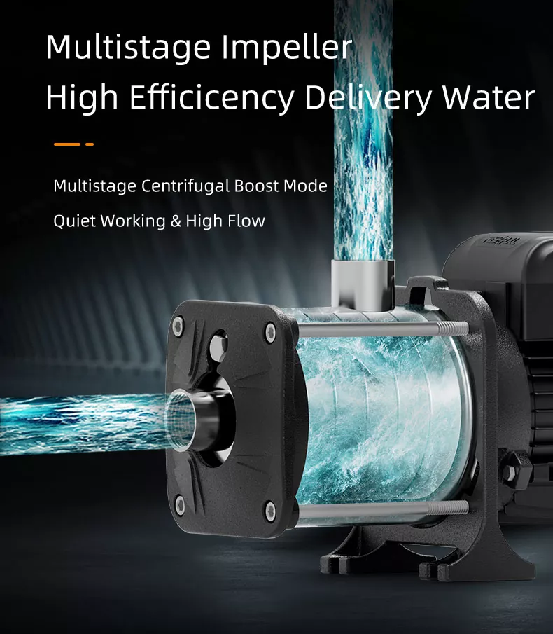 1. Monivaiheinen toiminnallisuus: Pumpussamme on useita juoksupyöriä, jotka toimivat saumattomasti yhdessä ja tarjoavat korkean paineen ja virtauksen, mikä tekee siitä täydellisen vaativiin ympäristöihin, joissa tasainen suorituskyky on ratkaisevan tärkeää.